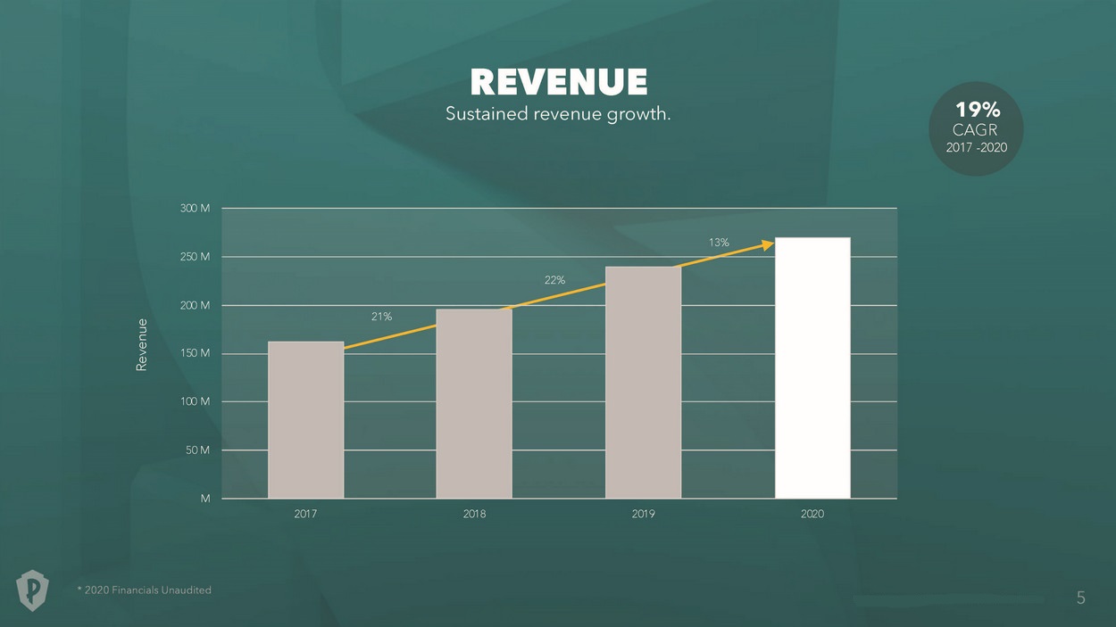 REVENUE Sustained revenue growth. Revenue M 50 M 100 M 150 M 200 M 250 M 300 M 2 0 17 2 0 18 2 0 19 2 0 20 13% 22% 21% 19% CAGR 2017 - 2020
