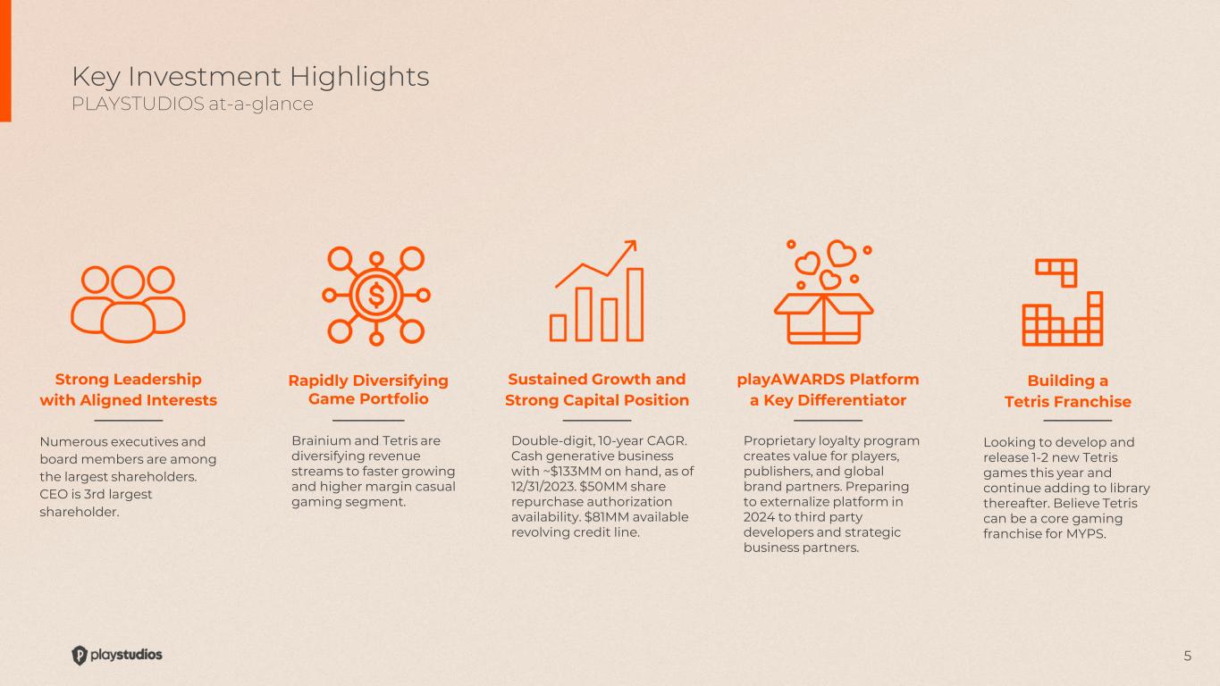 Samir Jain Treasury & Investor Relations PLAYSTUDIOS samir.jain@playstudios.com 4