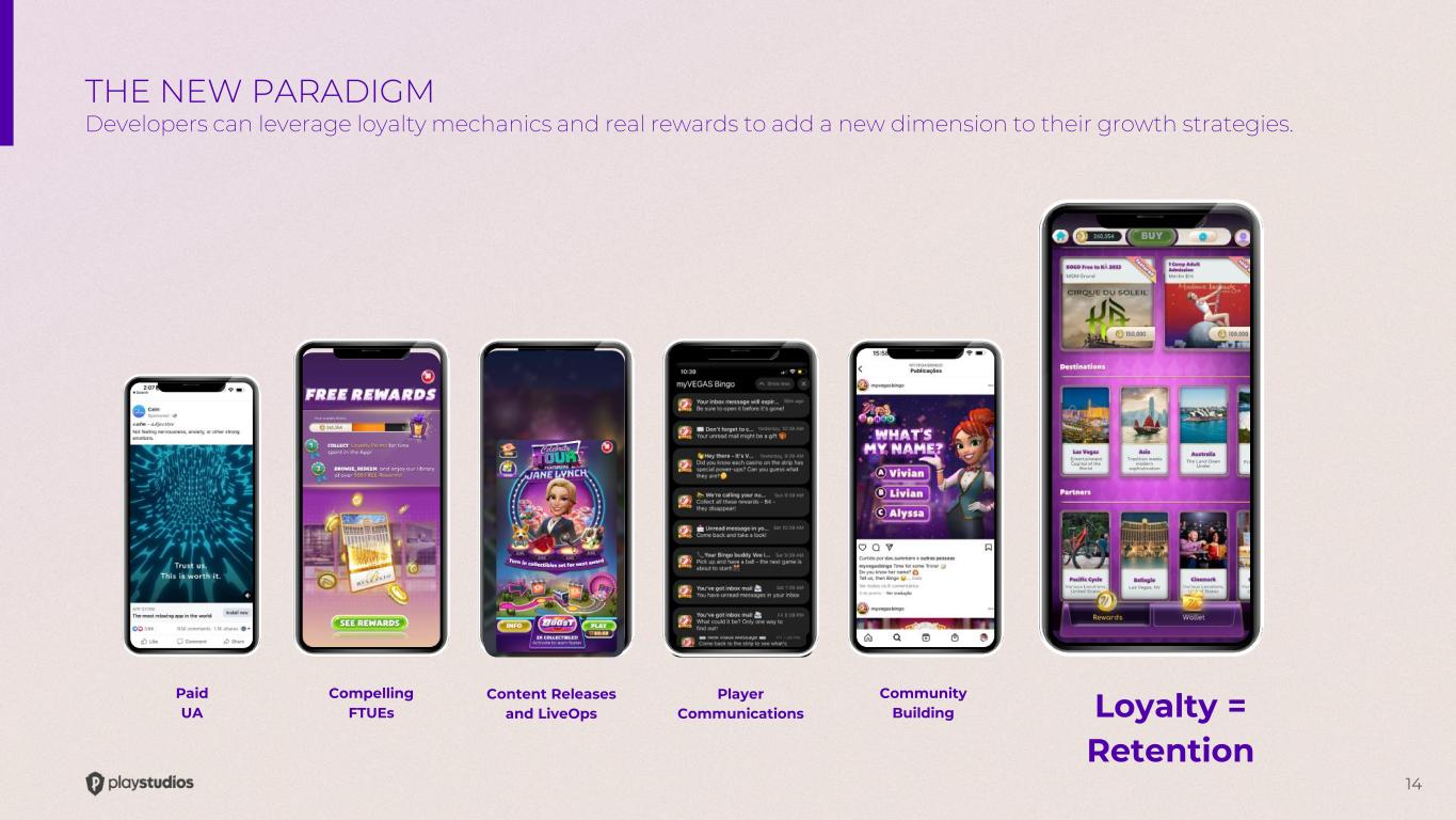 14 THE NEW PARADIGM Developers can leverage loyalty mechanics and real rewards to add a new dimension to their growth strategies. Player Communications Community Building Compelling FTUEs Paid UA Loyalty = Retention Content Releases and LiveOps